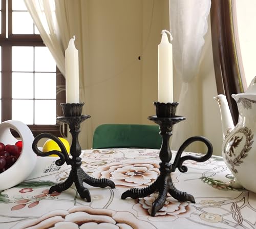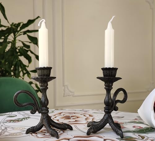 BSTWISH Kerzenhalter mit Krallenfuß, 2 Stück, Schwarz, Vintage Brown, Gusseisen, Feiertage, Halloween
