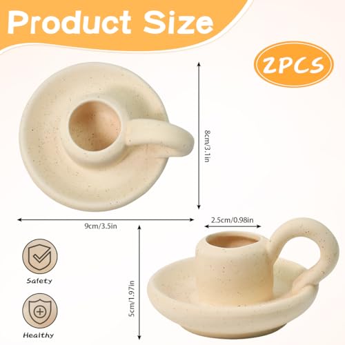 Huucozn 2er Set Kerzenständer Stabkerzen aus Keramik Stabkerzenhalter Porzellan Mini Kerzenhalter mit 2.5cm Bohrung Candle Holder Beige Deko Kerzenleuchter für Baumkerzen Stabkerzenhalter Deko