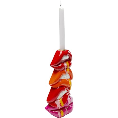 Kare Design Kerzenständer Lips, Rot, Lippen, handbemalt, Unikat, für Stabkerzen, Deko Objekt fürs Wohnzimmer, für Regale, Großer Kerzenhalter, 30x17x9 cm (H/B/T)