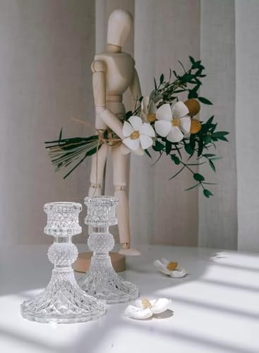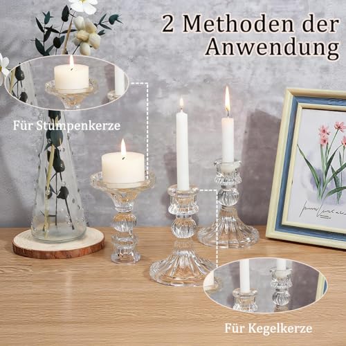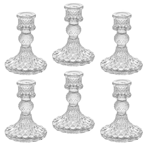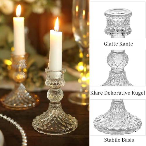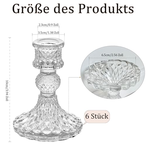 Kerzenhalter aus Transparentem Glas, Klare Kerzenhalters für Kerzenständer, 10cm Hohe Kristall-Kerzenhalter, Dekorativer Candle Holder als Tischdekoration für Hochzeiten, Feste, Dinnerpartys – 6 Stück