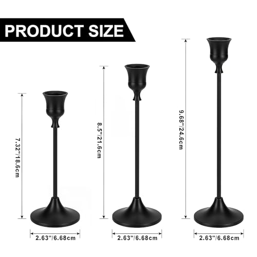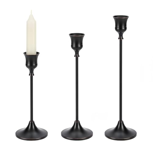 Luxvara Kerzenständer Stabkerzenhalter 3er Set, Metall Kerzenhalter Stab, Vintage Dekorativer Kerzenhalter, Kerzenleuchter Candle Holder für Party Hochzeit Deko Wohnkultur, 23/20/17 cm (Schwarz)