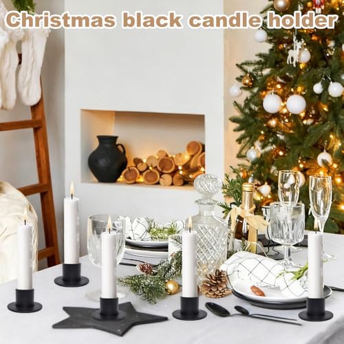 mizikuu 6 Stück Candle Holder Metall, Schwarz Vintage Matt kerzenhalter für Stabkerzen mit 2 cm Durchmesser Rund Dekorative Kerzenhalter Geeignet für Wohnzimmer Partys Weihnachten Hochzeiten