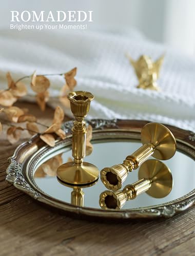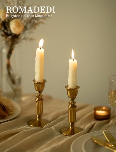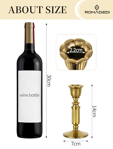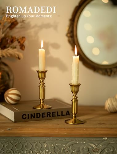 Vintage Kerzenständer kerzenhalter Stabkerzen Messing – Romadedi 2er Set Hoch Kleine Stabkerzenhalter Gold für Retro Antik Tischdeko Hochzeit Wohnzimmer Weihnachten Party Adventskranz Deko