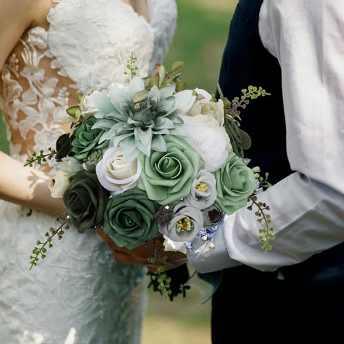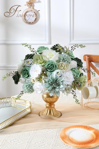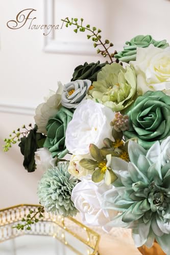 Floweroyal Artificial Flowers Kombination Grüne Blumen Mischen Dahlia Rosen mit Stielen für DIY Hochzeit Brautsträuße, Babyparty, Blumenarrangement, Tischmittelstücke, Heimdekoration