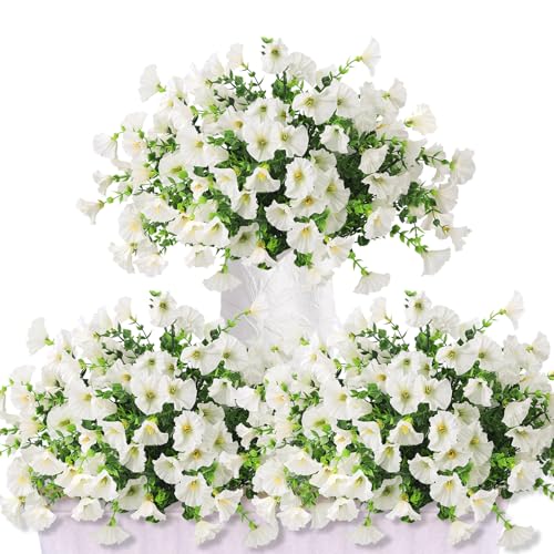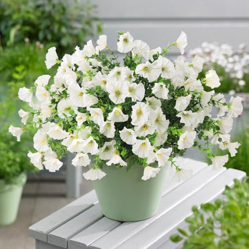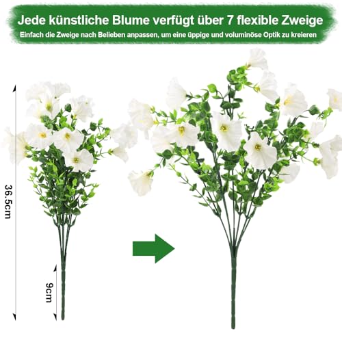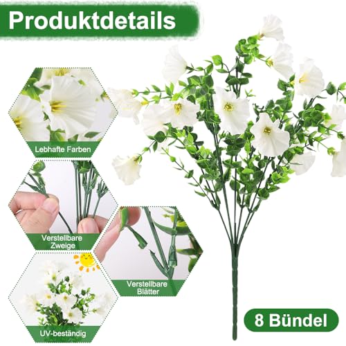 XIMISHOP 8 Bündel Künstliche Blumen,Kunstblumen Pflanzgefäß UV-beständig Balkonpflanzen Plastik Blumen Dekoration Für Innen Outdoor Balkon Garten(Weiß)