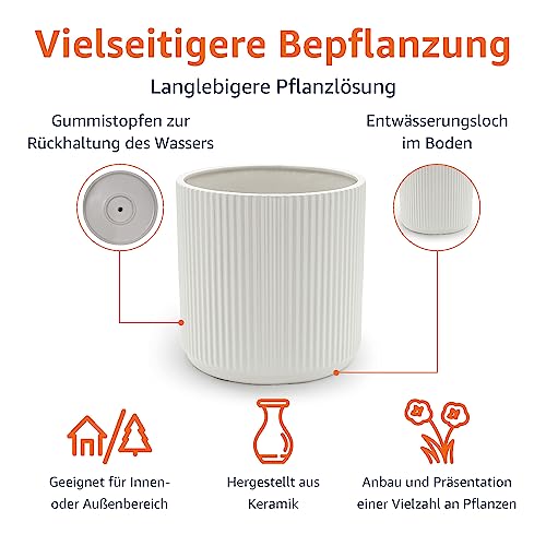 Amazon Basics Rund, Geriffeltes Keramik-Pflanzgefäß, 20.3 cm, Weiß