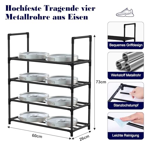 4 ETAGEN-SCHUHREGAL MIT GROSSER KAPAZITÄT: Dieses Schuhregal schwarz verfügt über 4 Etagen mit den Maßen 60 x 25 x 72 cm zur Aufbewahrung aller Arten von Schuhen, einschließlich Sportschuhe, flache Schuhe, Sandalen und mehr. Die stapelbaren und herausnehmbaren schuhregal schmal sorgen dafür, dass auch Ihre Stiefel ordentlich aufbewahrt werden können. Dieses schuhregal platzsparend bietet Speicherlösung.