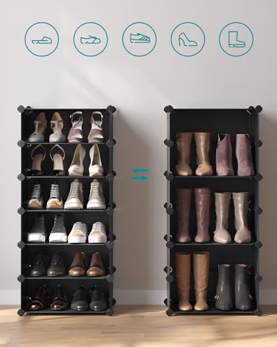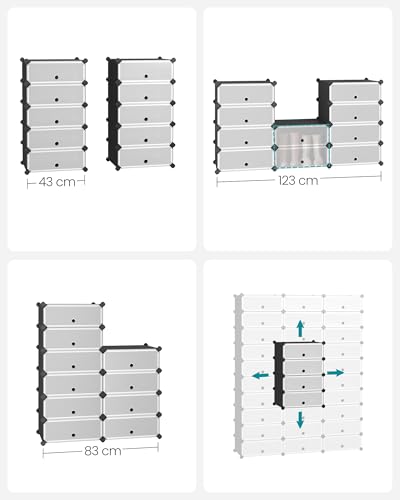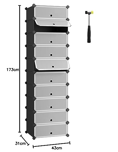 SONGMICS Schuhregal, Steckregal, Regalsystem, Schuh-Organizer, DIY-Regal, mit Tür, aus PP-Kunststoff, 10 Ebenen, schwarz LPC10HV1
