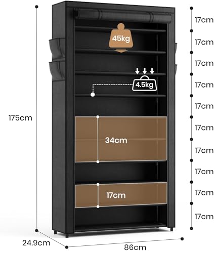 Große Kapazität Schuhregal: Die Größe dieses hohen Schuhregals ist: 85 x 25 x 175 cm, mit 11 Schichten, die 50 – 55 Paar Schuhe halten können; Dank der herausnehmbaren Schuhschrank können verschiedene Arten von Schuhen, wie High Heels und Stiefel, gespeichert werden