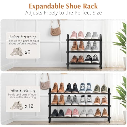 YUWHFEI Schuhregal Platzsparend, 3 Ebenen Shoe Rack Metall, Ausziehbar Schuhablage 45 to 80cm, Klein Schuhständer Schwarz, Schmales Schuh Regal für Outdoor, Flur, Garderobe, Eingangsbereich