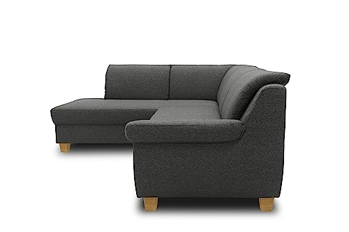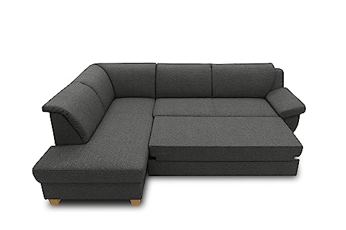 DOMO. collection Ecksofa Panama, klassisches Ecksofa in L-Form Links, Eckcouch, Sofa Couch, Ecke mit Schlaffunktion 254 x 186 x 80 cm (BxTxH), anthrazit