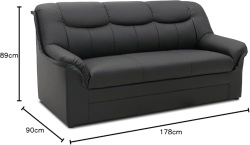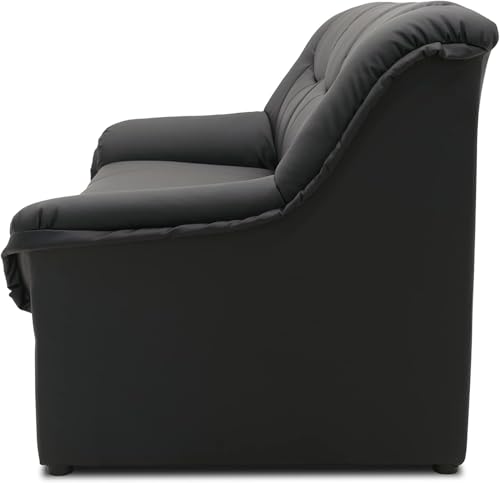DOMO. collection Sofa Berlin, Leder, klassisches 3er Sofa, Polstergarnitur mit weichem Kunstleder und hochwertigem Federkern, 3 Sitzer 178 x 90 x 89 cm (BxTxH), schwarz