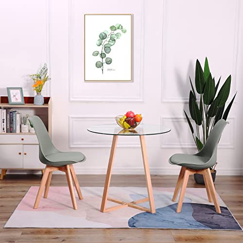 EGGREE 2er Set Esszimmerstühle mit Massivholz Buche Bein SGS Geprüfter, Retro Design Gepolsterter lStuhl Küchenstuhl Holz, Grau