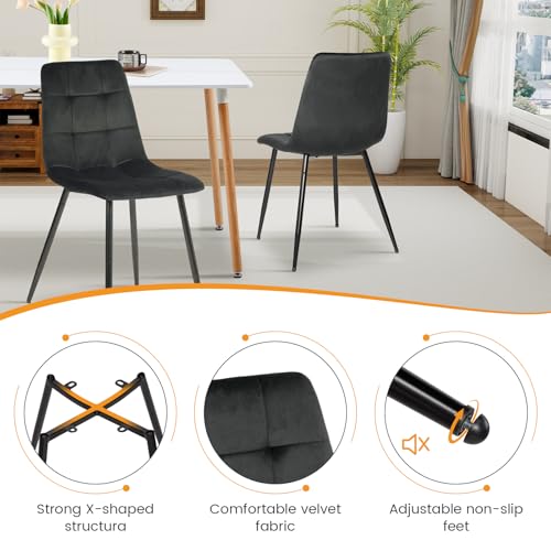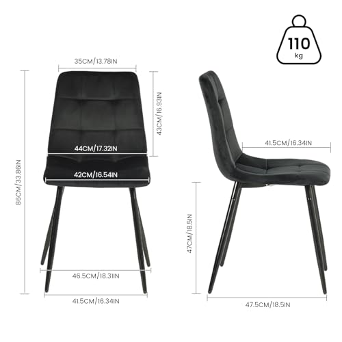 EGGREE Esszimmerstühle 4er Set Samt Esszimmerstuhl Essstühle mit Gepolsterte Moderner Design Küchenstühle, Stühle für Esszimmer Wohnzimmer Schlafzimmer, Metallbeinen Tragkraft 150 kg, Schwarz