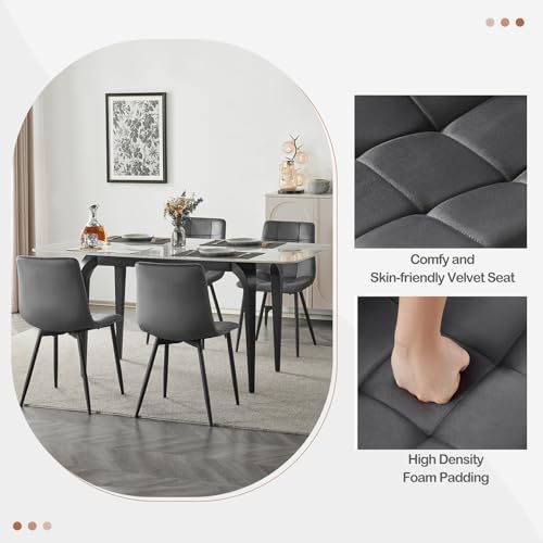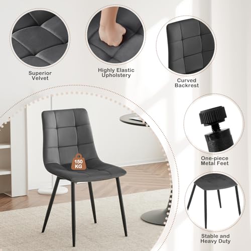 EUGAD Esszimmerstühle 4er Set, für Esszimmer Küche Wohnzimmer, Küchenstühle gepolstert mit Rückenlehne Samtbezug, mit Metallbeinen, 150 kg belastbar, Dunkelgrau
