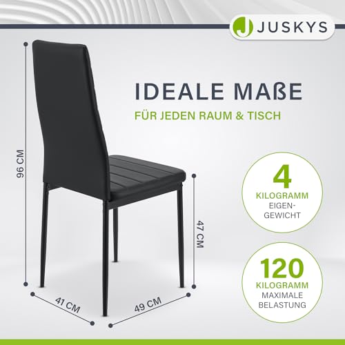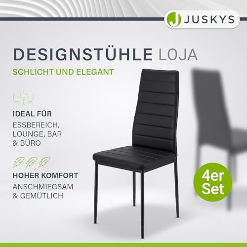 Juskys Esszimmerstühle Loja 4er Set mit Kunstleder Bezug & hoher Rückenlehne – stabiles Stahl Gestell bis 120 kg belastbar – 4 Stühle für Esszimmer & Küche Küchenstühle Esszimmerstuhl Schwarz