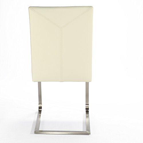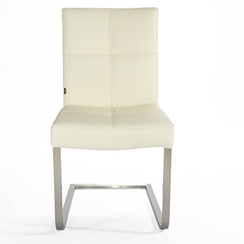 SIX Freischwinger Lederstuhl Libero | Edelstahl Stuhl Leder-Stühle Rindsleder Creme Weiss
