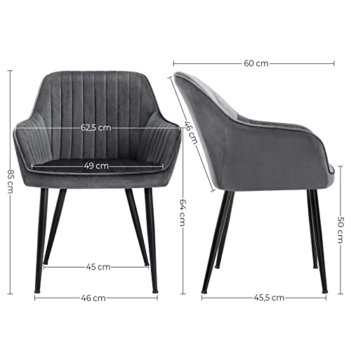 SONGMICS Esszimmerstuhl, Sessel, gepolsterter Sitz, mit Armlehnen, Sitzbreite 49 cm, Metallbeine, Bezug aus Samt, Belastung 110 kg, für Wohnzimmer, Schlafzimmer, Grau LDC087G01