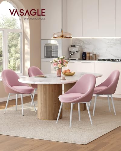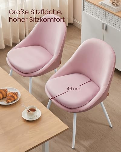 VASAGLE Esszimmerstuhl 2er Set, Küchenstuhl, bis 120 kg belastbar, Kissen mit 5,5 cm dickem Schaumstoff gepolstert, nach außen stehende Beine, für Büro Wohnzimmer, pastellrosa-wolkenweiß KDC184R01