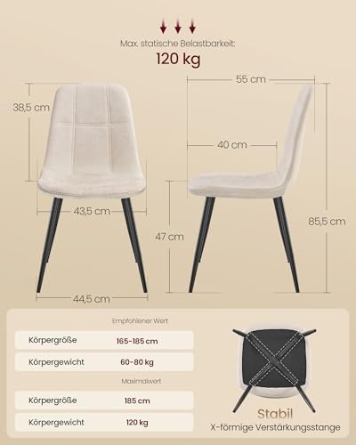 VASAGLE Esszimmerstuhl 4er Set, Küchenstuhl, Polsterstuhl, Metallbeine, verstellbare Füße, pflegeleicht, Chenille-Gewebe, PU mit von Gletschern inspiriertem Muster, cremeweiß KDC188W01