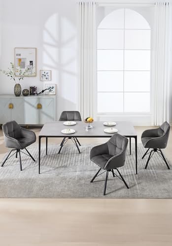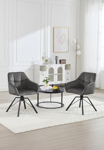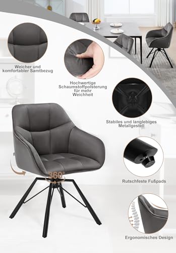 WOLTU Esszimmerstuhl drehbar 6er Set, Küchenstuhl, Polsterstuhl, Drehstuhl, bequemer Stuhl mit Armlehnen Rückenlehne, Armlehnenstuhl für Esszimmer Wohnzimmer, mit Samtbezug, Dunkelgrau