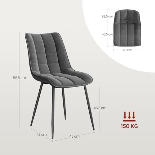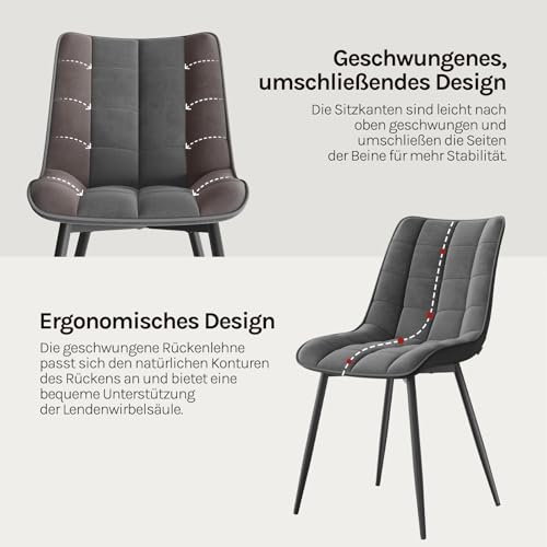 WOLTU Esszimmerstühle 2er Set, für Wohnzimmer Küche Esszimmer, Küchenstühle gepolstert mit Rückenlehne, Sitzfläche aus Samt, mit Metallbeinen, bis 150 kg belastbar,Dunkelgrau