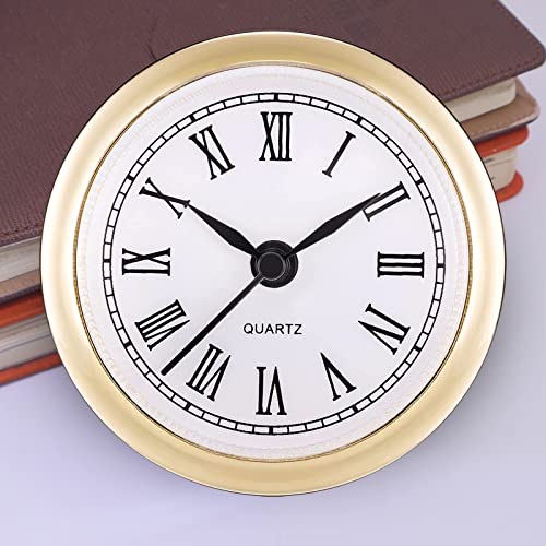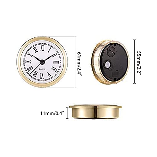 Carkio Mimi Clock Insert Clock Craft Round Quartz Movement 2.4 Inch (61 mm) with Gold Trim Roman Number Home Decor