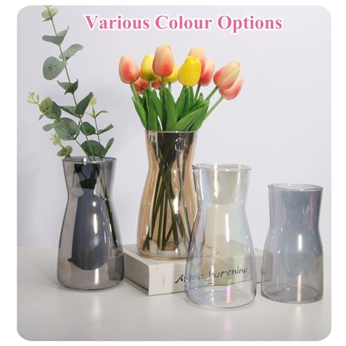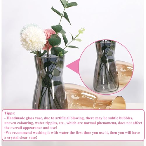 Blumenvase Glas, Klarglas Vase, 20CM Hoch Glasvase für Tischdeko, Dekorative Vase für Pampasgras, Tulpen, Orchideen, Rosen, Trockenblumen (Rauchgrau)
