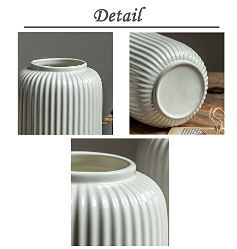 Gerippte Vase Weiß 20 cm Hoch, Modern Blumenvasen aus Keramik für Tischdeko Innenbereich, Deko Vasen für Pampasgras