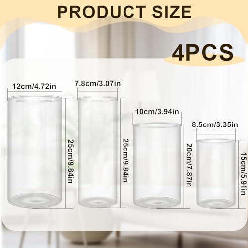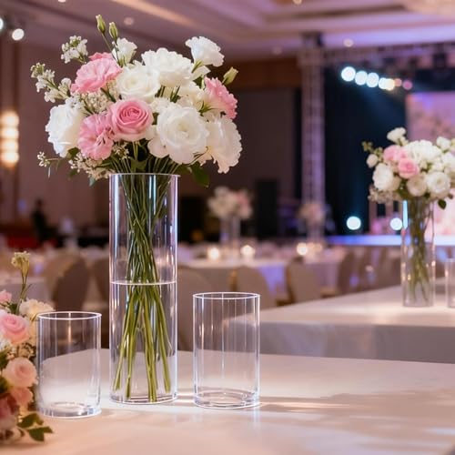 mawmuaw 4 Stück Blumenvase Transparente Acryl Vasen Set Vase Kunststoff Zylindervasen Bruchsichere für Blumenarrangements DIY Hochzeitsdekoration (12 x 25 und 10 x 20 und 8,5 x 15 und 7,8 x 25 cm)